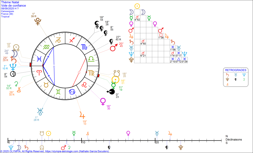 Ce vote de confiance nâest pas seulement une affaire de chiffres Ă lâAssemblĂ©e : câest un miroir de nos propres valeurs. Ouvrons les yeux (Saturne en Poissons), gardons la tĂȘte froide (Mercure en Vierge), mais ne nous laissons pas sĂ©duire uniquement par les beaux discours (VĂ©nus en Lion) ni par les compromis de façade (Lune Noire en Balance). Maintenant, vous savez⊠Les planĂštes proposent et nous disposons ! đ