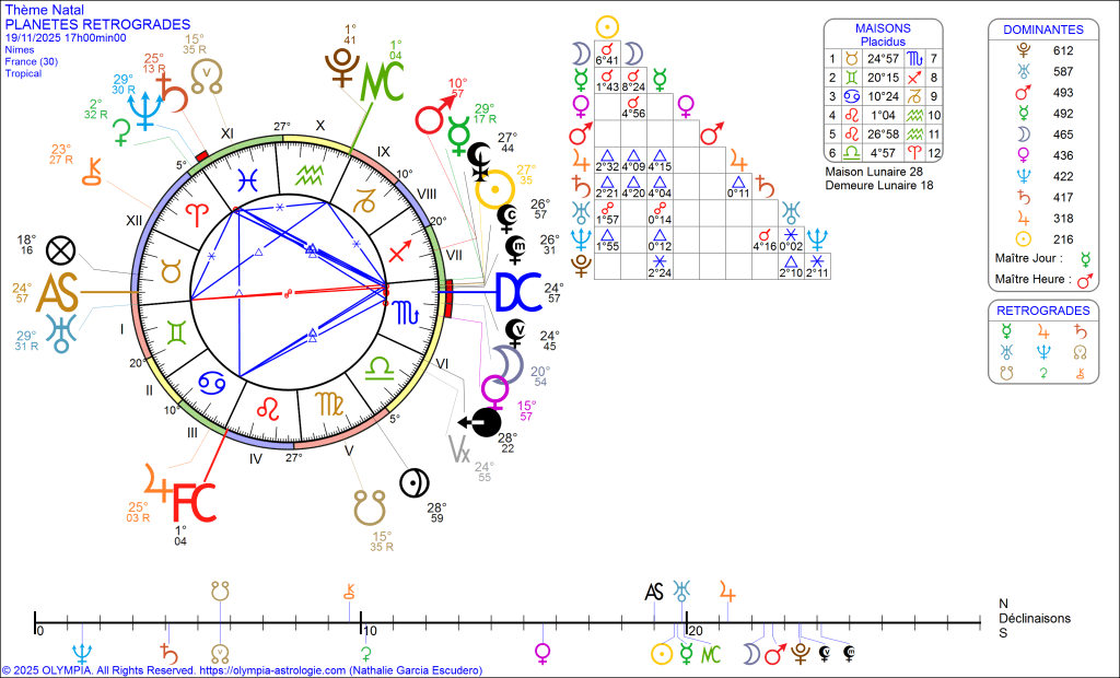 Chaque planĂšte rĂ©trograde prend la couleur du signe quâelle traverse.