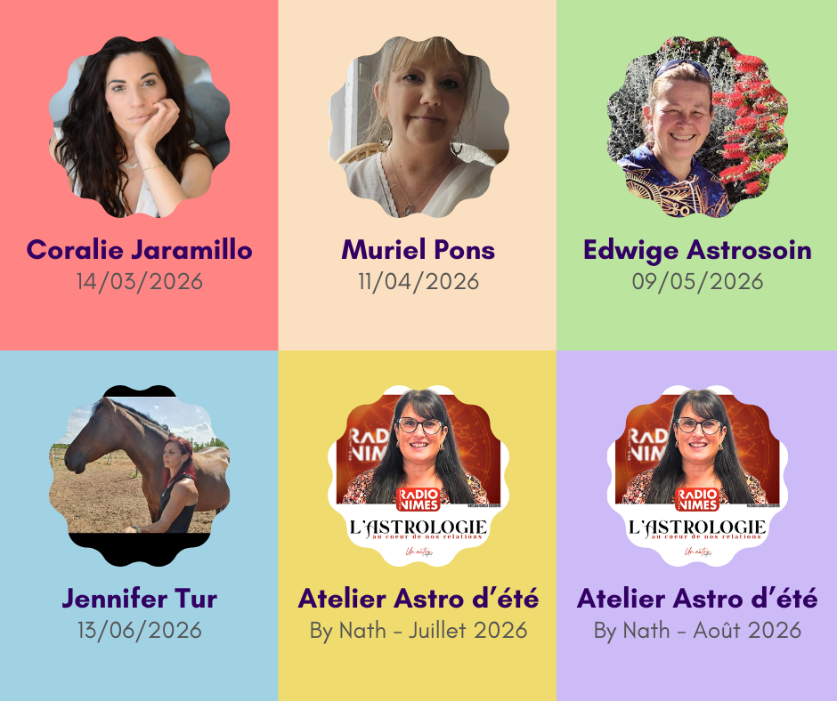 au Siège de l’Association ou Salle du Labadou à Caissargues, pour un moment unique de partage entre corps et âme connectant l’astrologie à d’autres disciplines ou expressions artistiques.